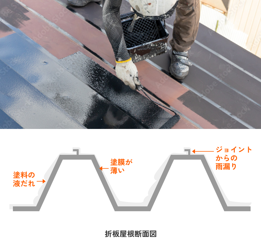 作業者の技量差、寒暖差による液だれ、折板屋根の形状が原因で遮熱効果にばらつきが生じます。また、紫外線や風雨による塗膜の劣化が避けられず、定期的な塗り替えやメンテナンスが必要となります。