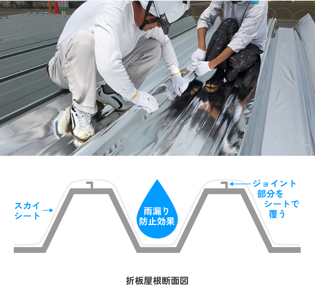 折板屋根の場合は屋根の上から施工できますので室内の状況に影響されません。