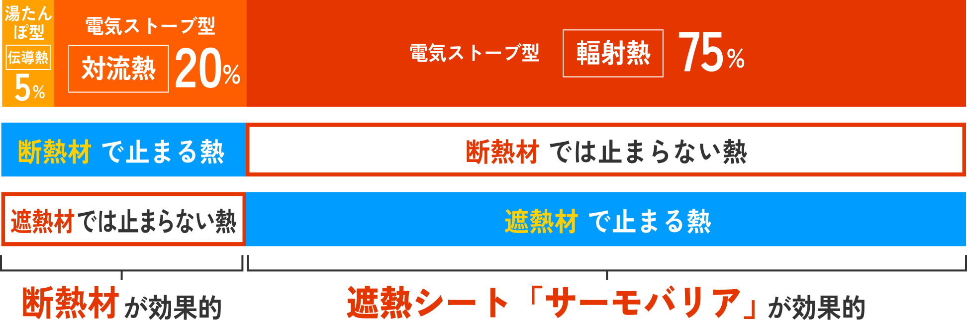 サーモバリアは「輻射」に大きな効果があります。断熱材では防げなかった「輻射」をサーモバリアが補い、断熱材と合わせて使うことで快適な住まいが実現できます。